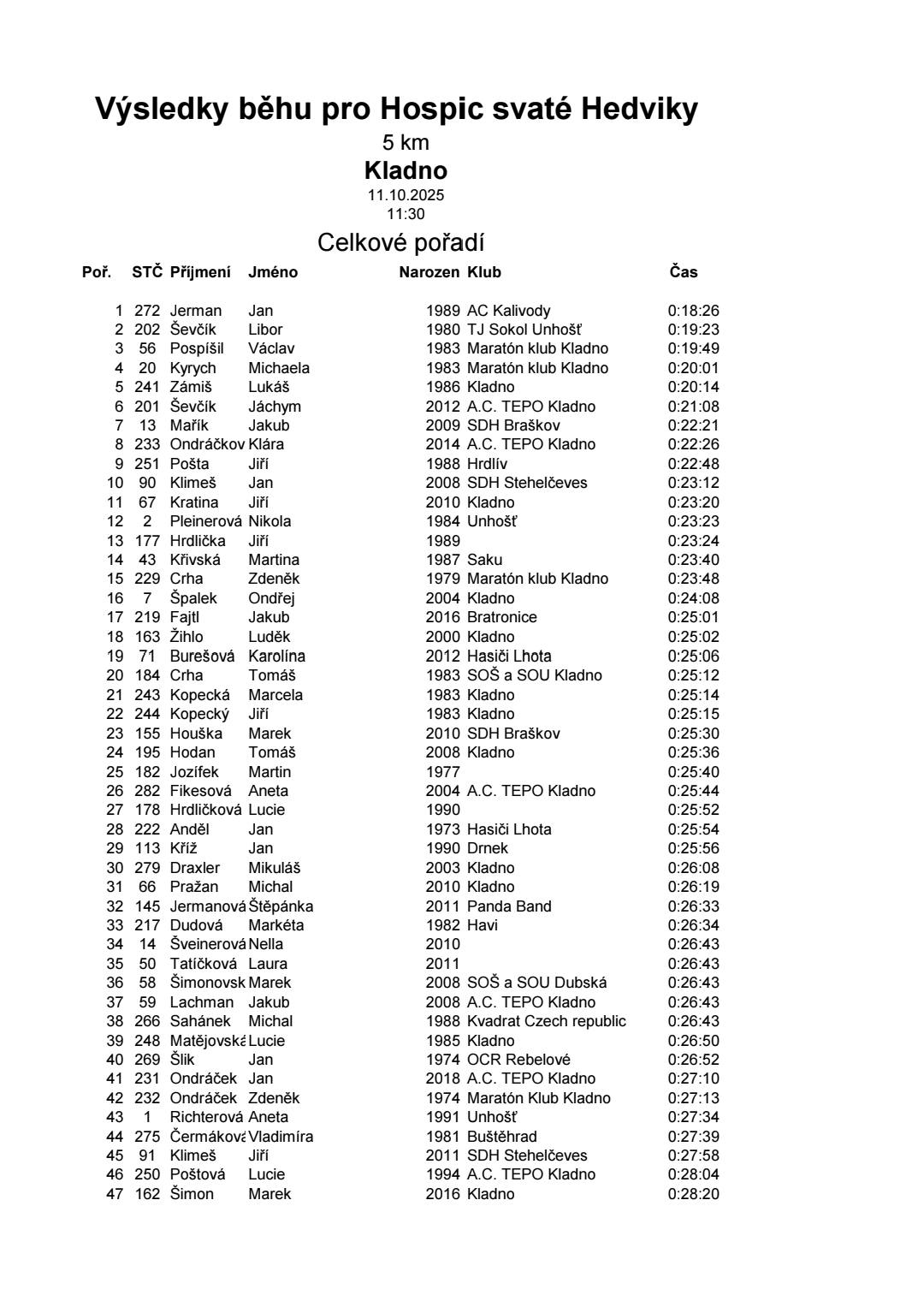 Přinášíme vám také výsledkovou listinu z našeho běhu! Byli jste neskuteční a my nemáme slov.